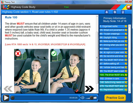 • Interactive tutorial that tells you all about the Theory Test with professional voice-over.